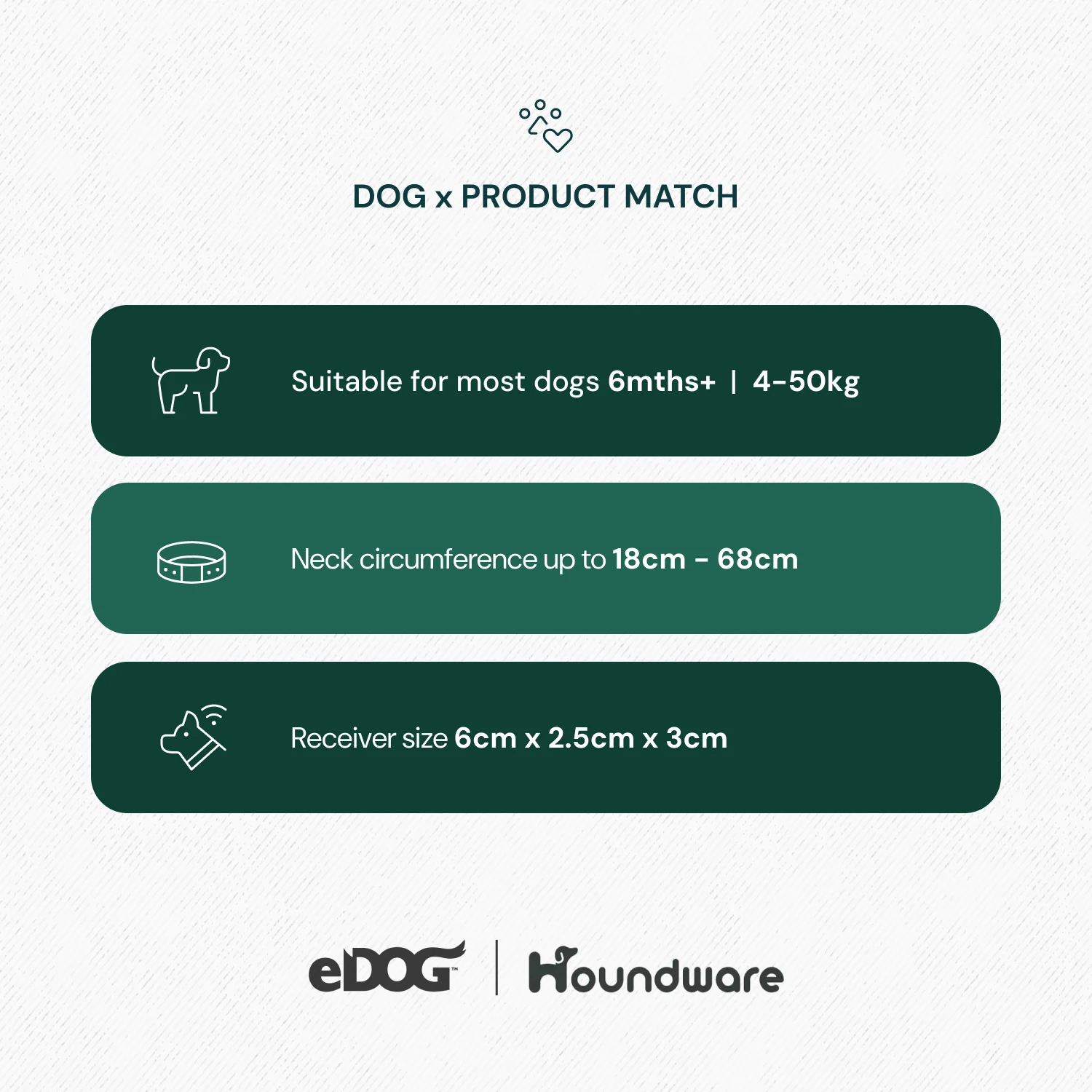 | Suitable Dogs | Small, Medium & Large |