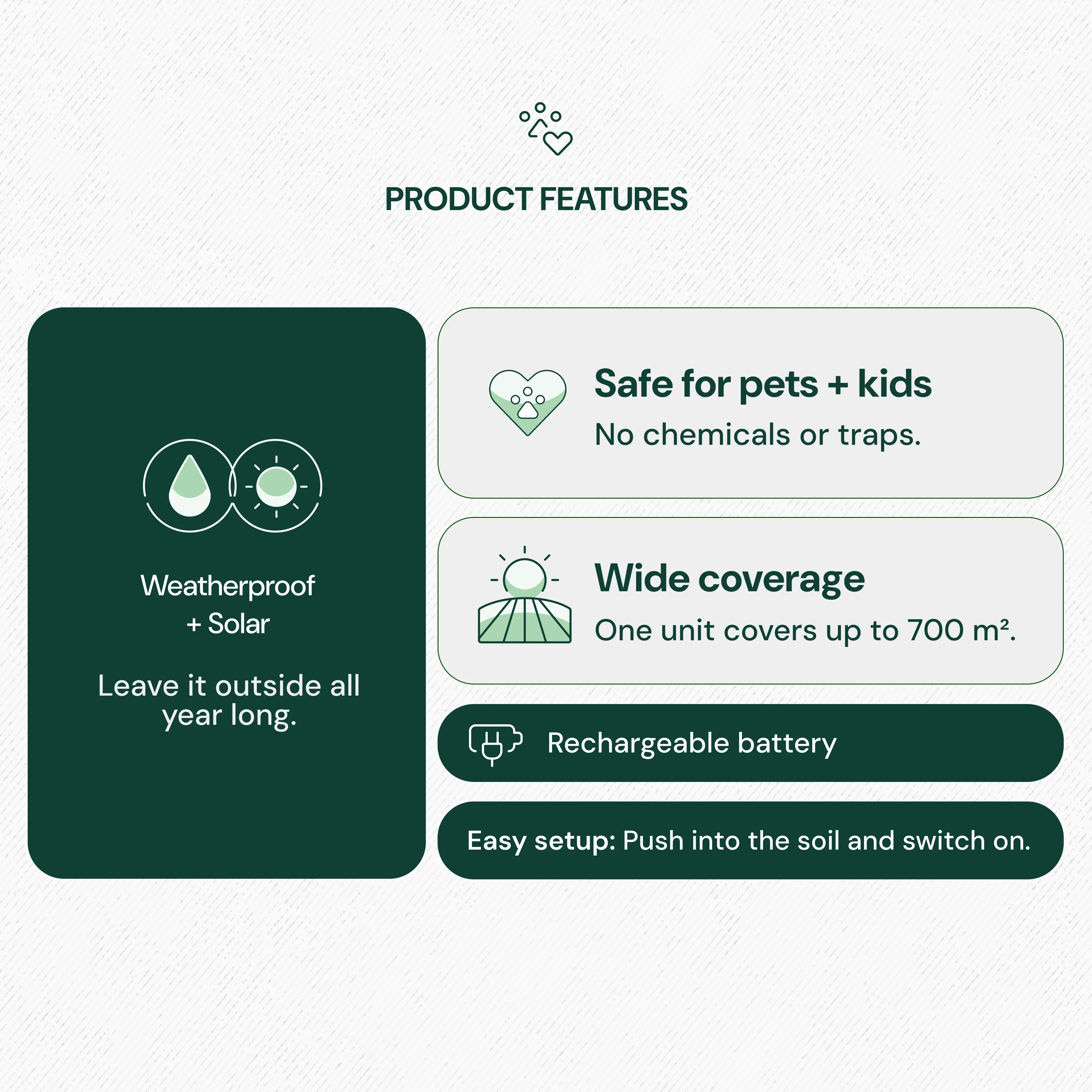 - Easy Installation & Maintenance: With solar power and easy installation, it’s a low-maintenance solution for keeping your outdoor areas critter-free.