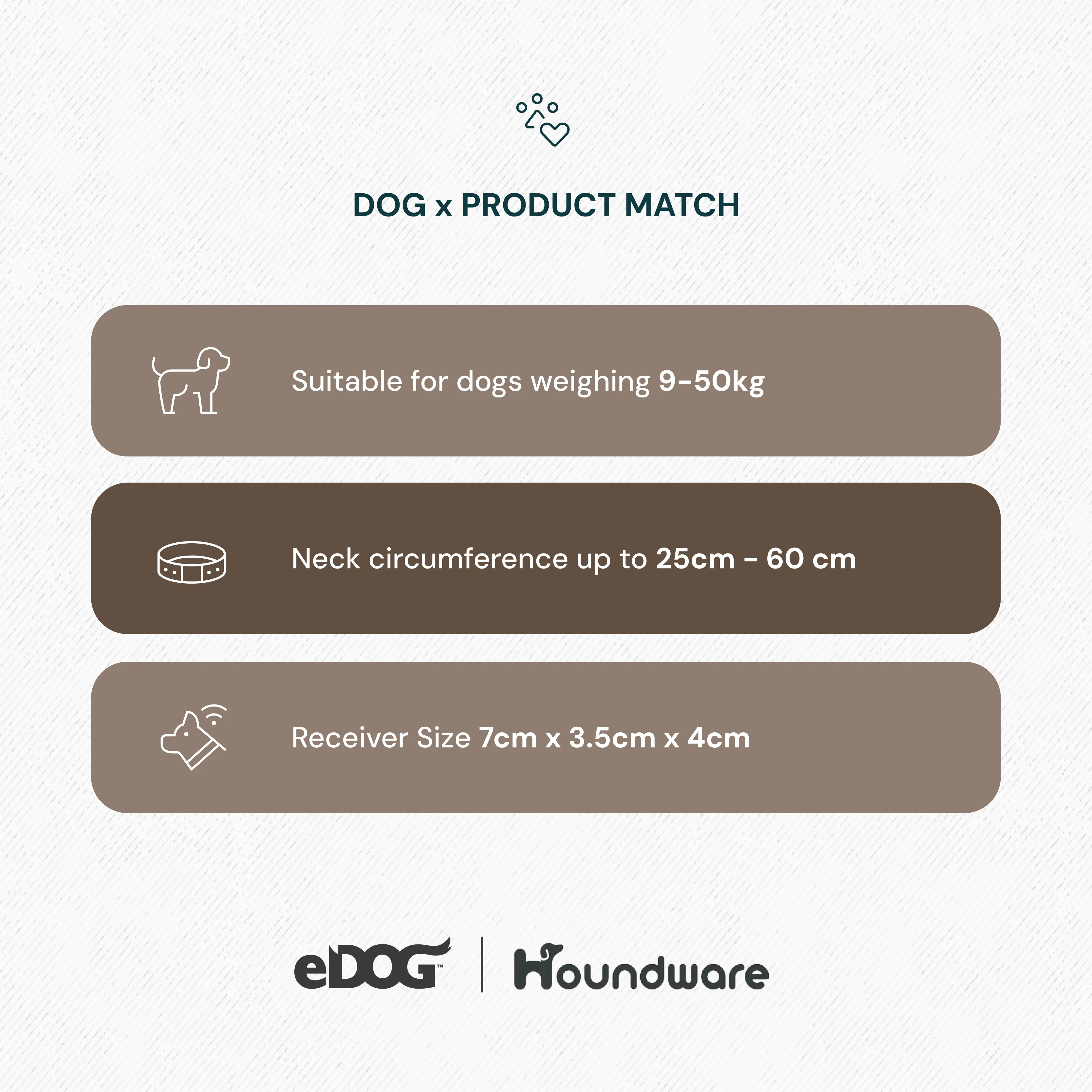 For medium to large dogs (9kg - 50kg) with neck sizes 25cm - 60cm.